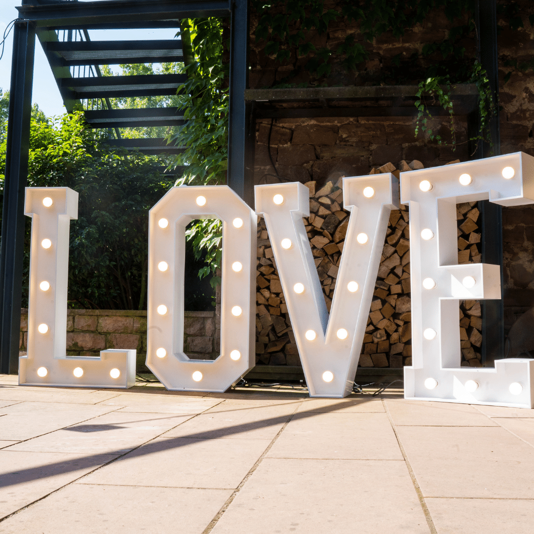 Unsere Leuchtbuchstaben könnt Ihr vielseitig nutzen: Für eine einzigartige Atmosphäre auf der Tanzfläche, im Außenbereich Eurer Location, als Hintergrund beim Sweet Table oder im Emfangsbereich für Eure Gäste. Sie können farblich eingestellt und per Fernbedienung gedimmt werden.